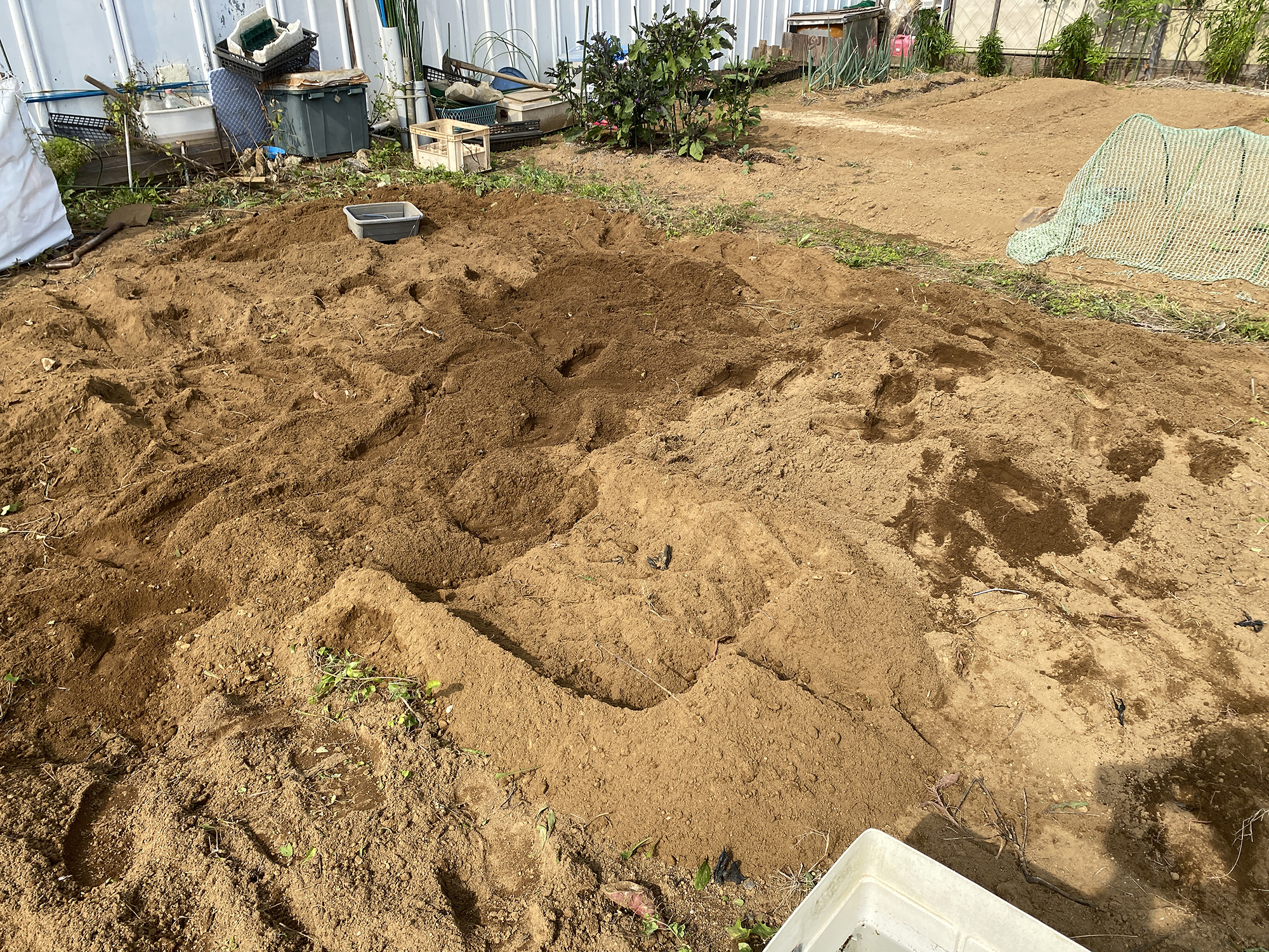 少し試しに入れてから、さらに土を掘り土に帰す準備は万端。