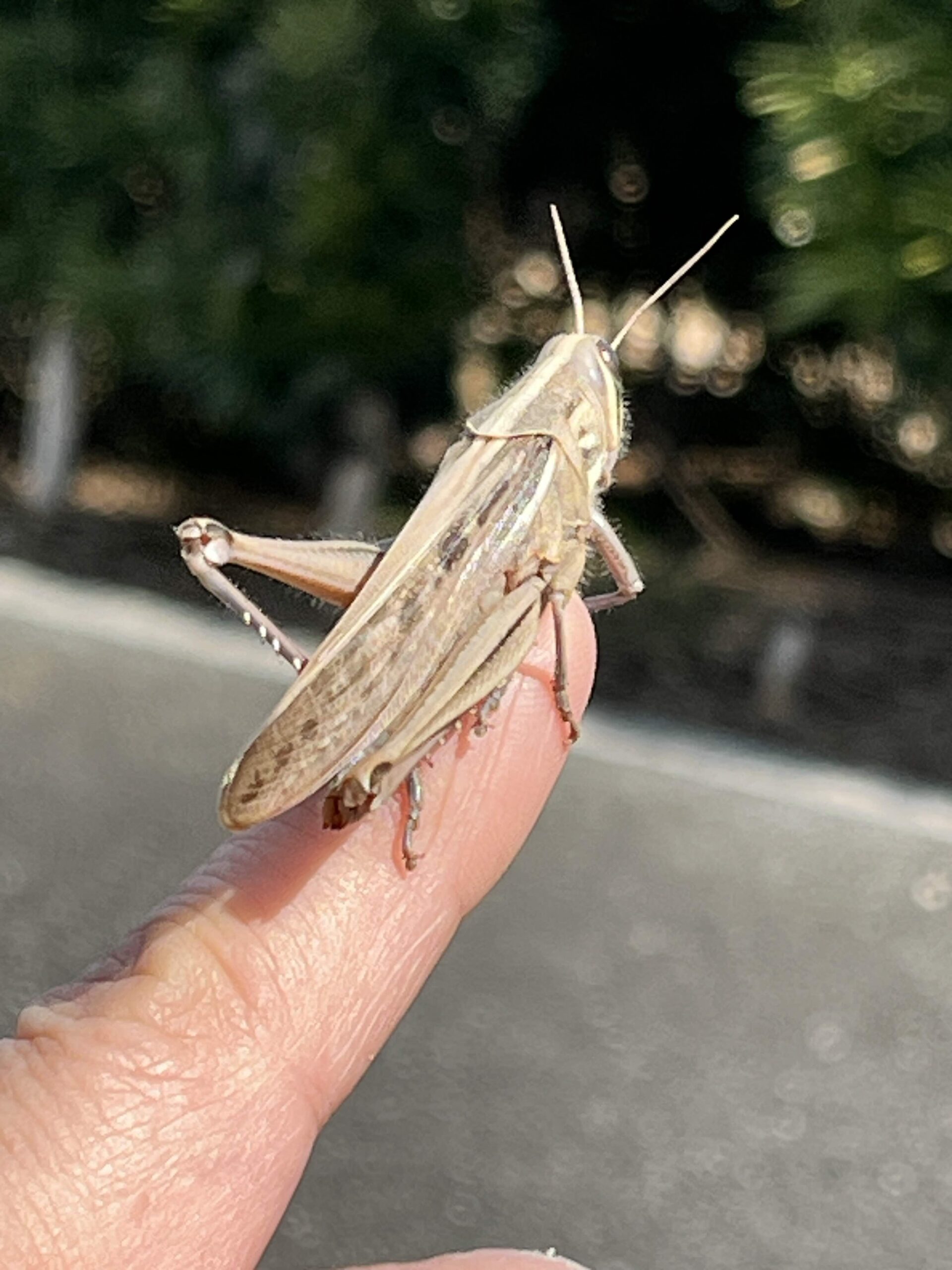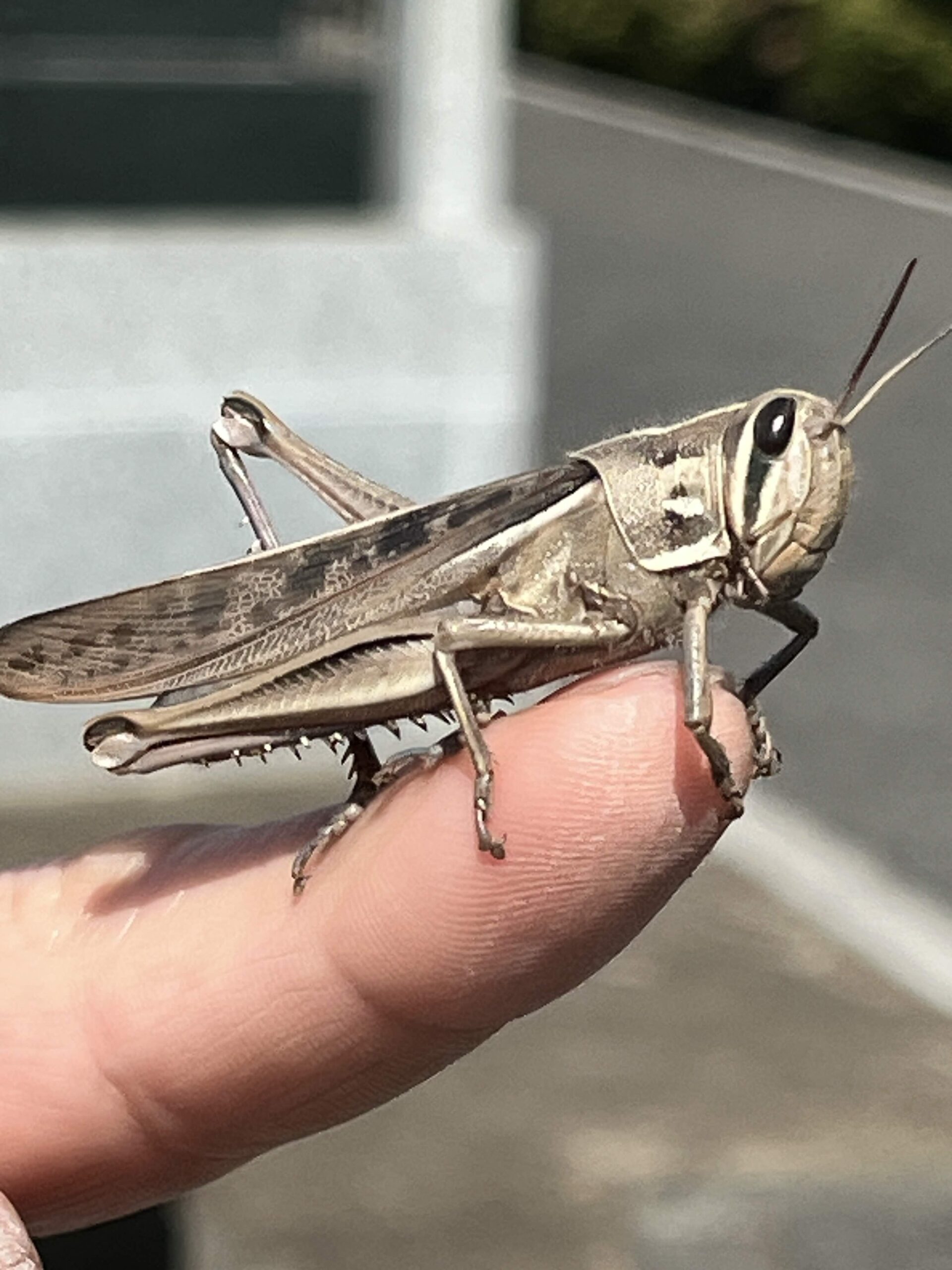 バッタを掴まずに、こんな長い間、手に乗せたのは生まれて初めてかも!