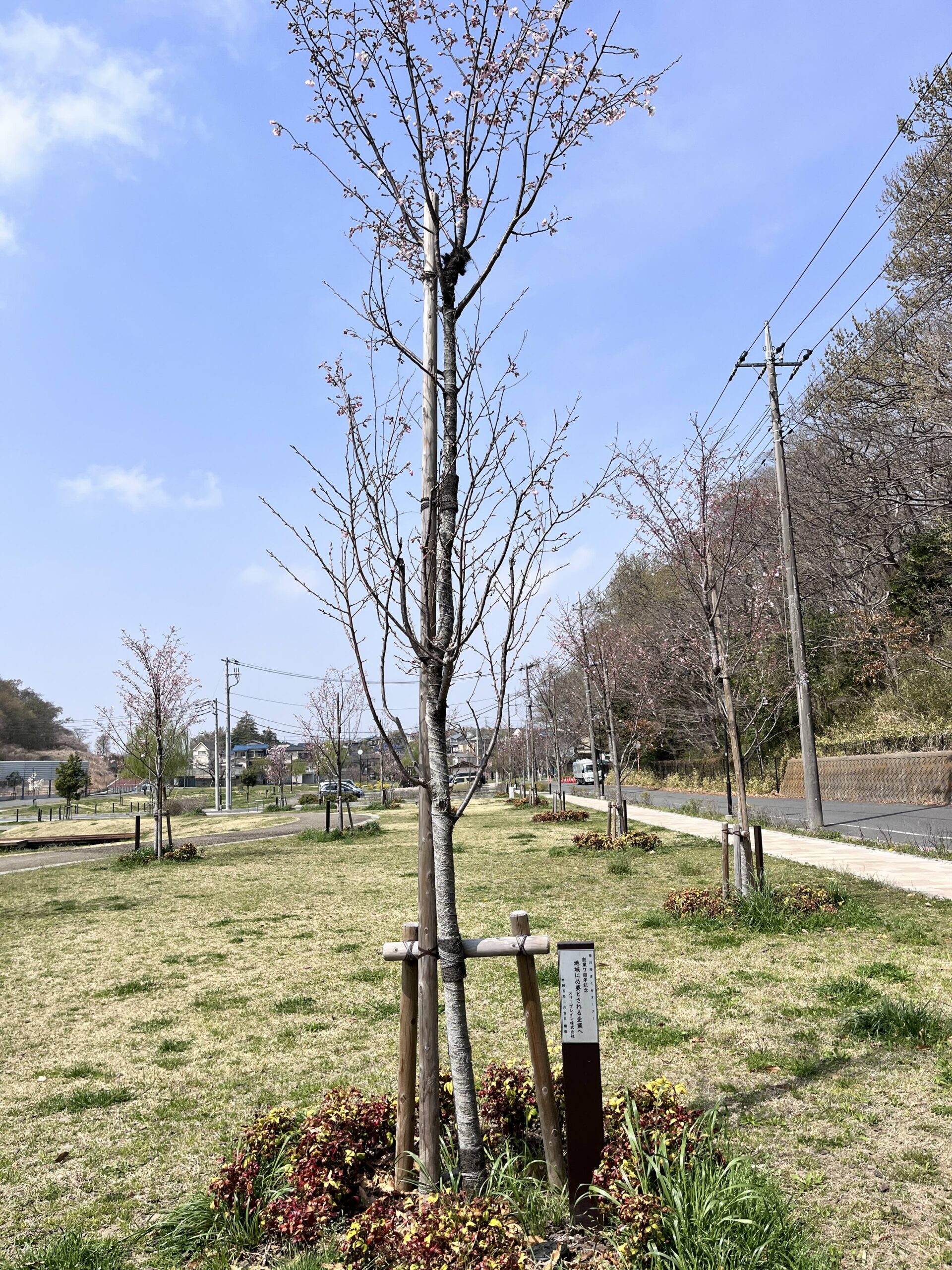 そんな中、気候が暖かくなり、弊社の7年目の記念に、近くの公園に植樹した桜も咲き始めました。
