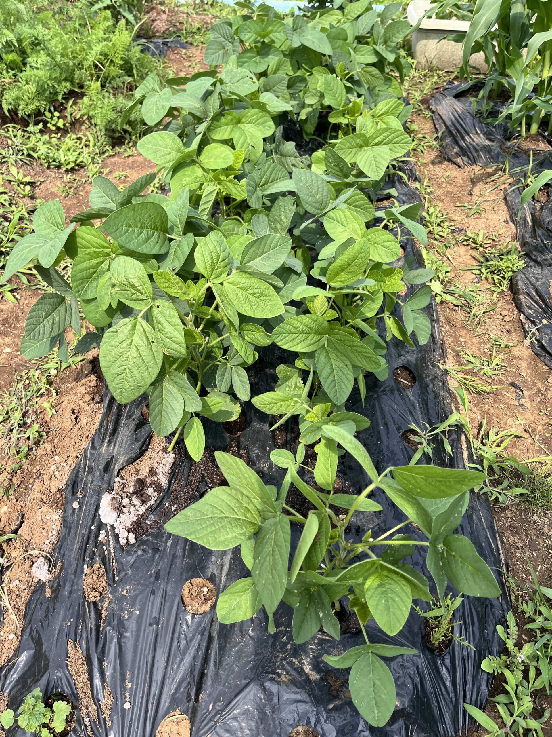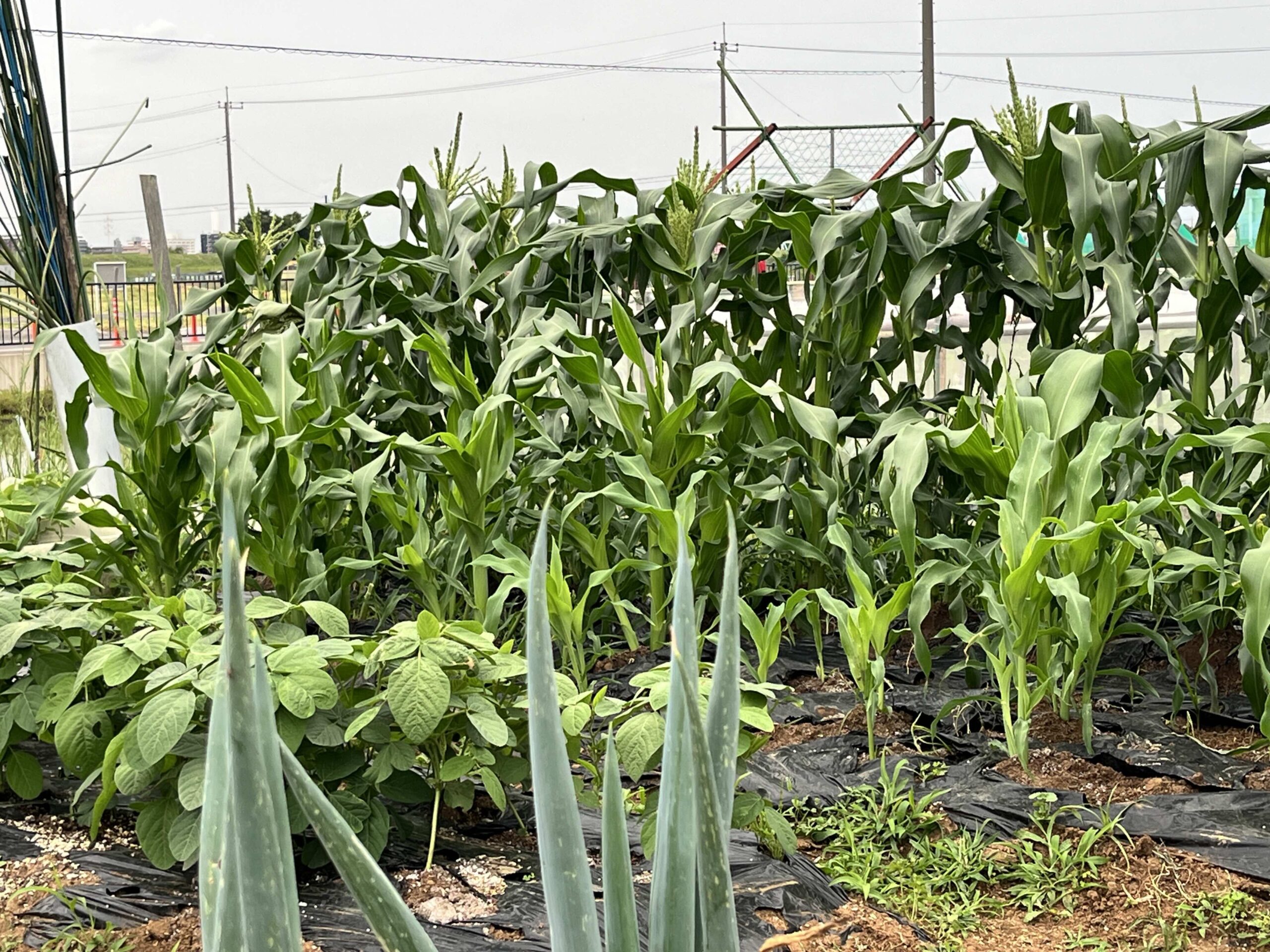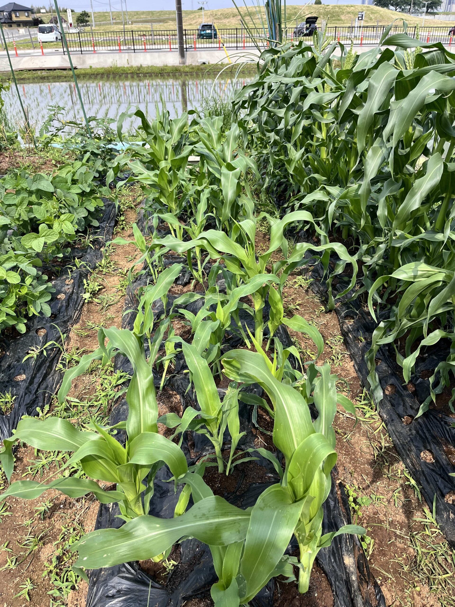 とうもろこし、枝豆、ミニトマト、ゴーヤにきゅうりやスイカなど、その他色々育ってます(^ ^)