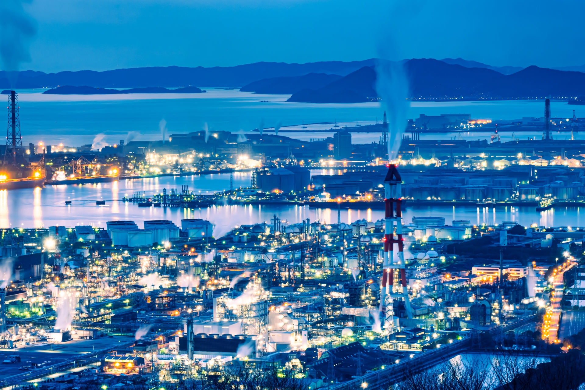 ずっと見てられる綺麗な夜景だったので、みなさんにも、きちんとその時の風景をお届けできるようちょっとフリー素材の水島工業地帯の写真をお借りしました。