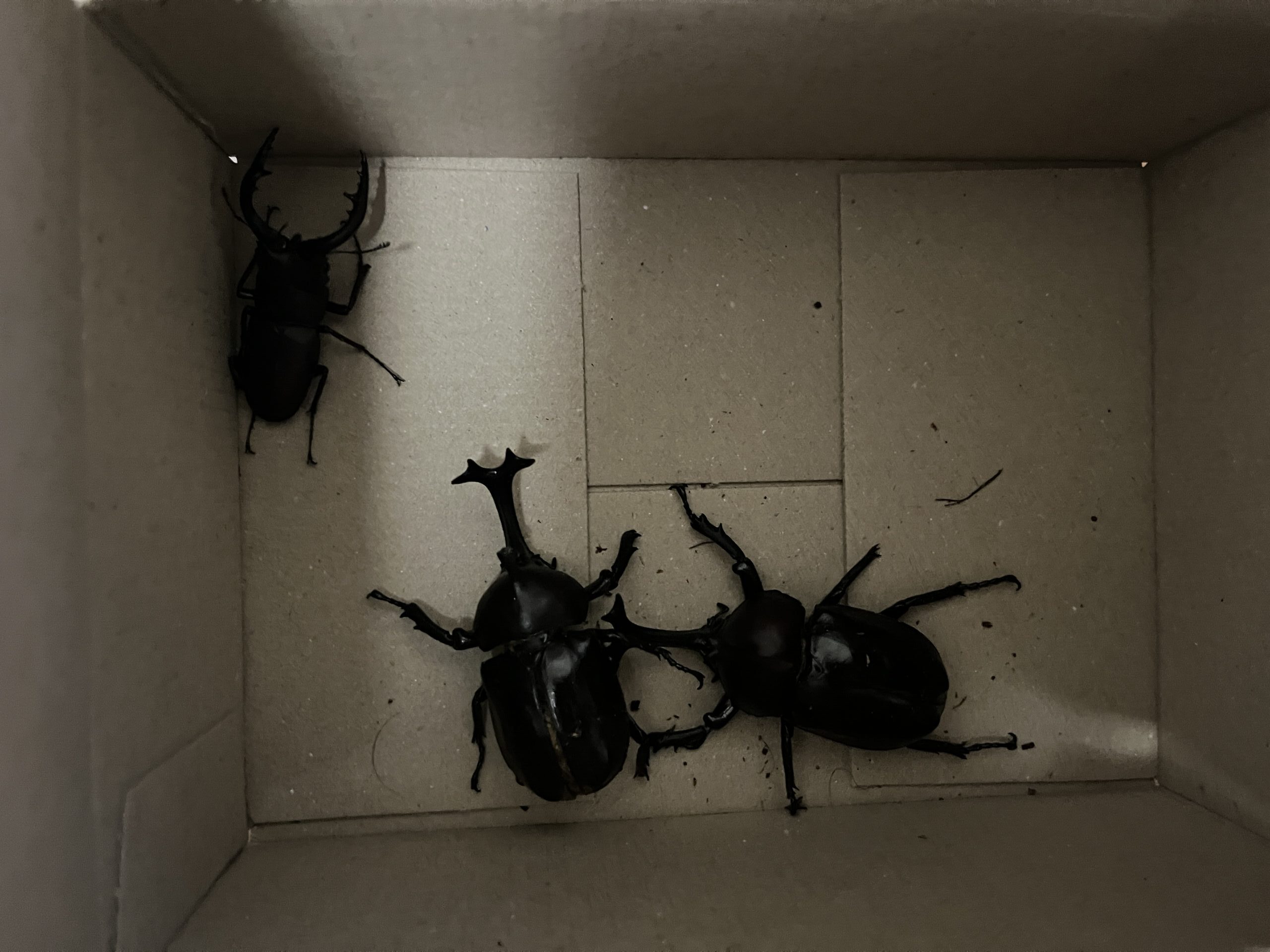 今回は道端で偶然出会った2ペアのカブトムシだけなので、あまり数は期待していなかったですが、