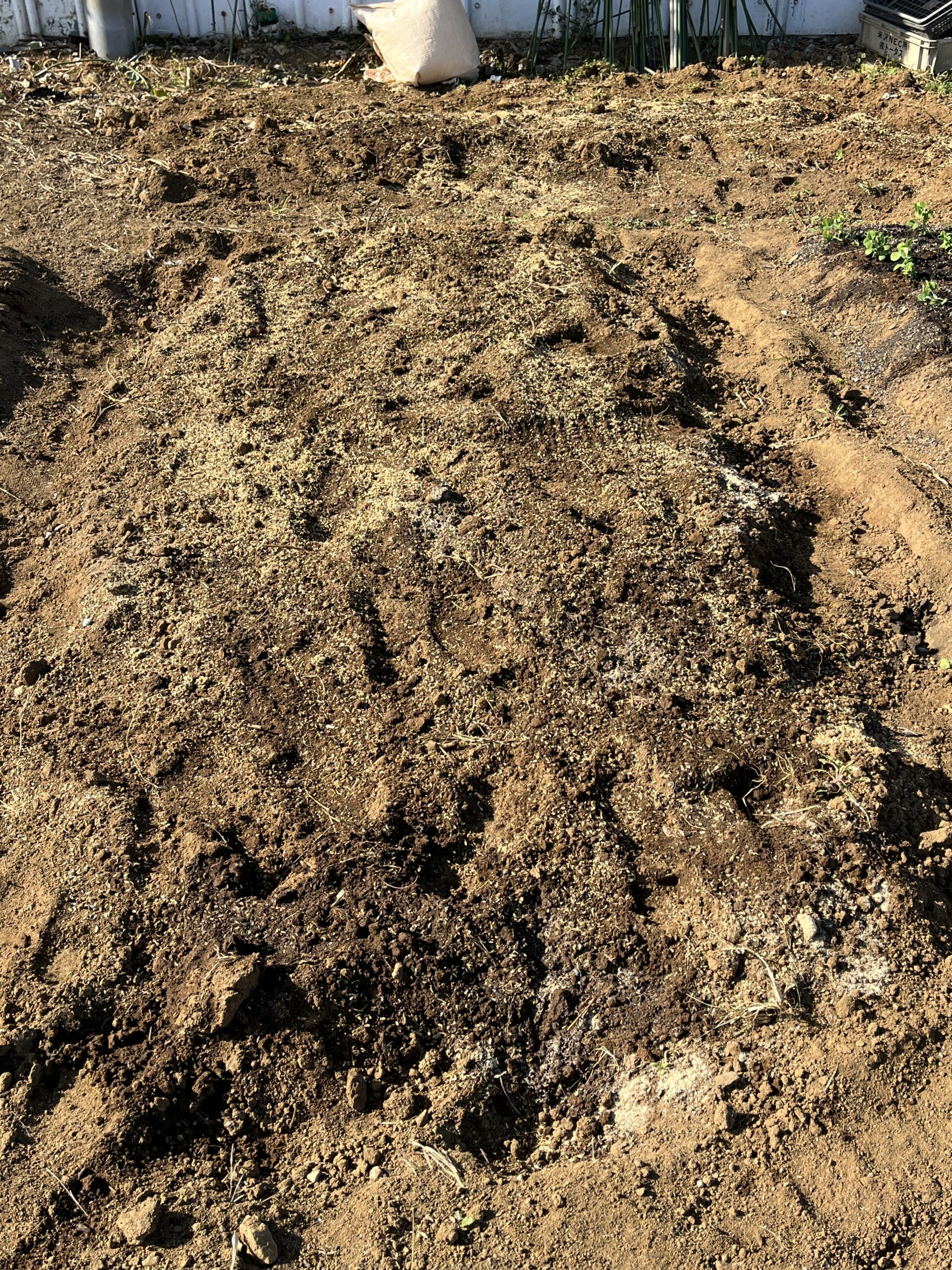 あまり綺麗にはできないけど、試行錯誤しながらとりあえず今の時期は土を改良していて、土の中の微生物が住みやすい環境になりつつあるかな。