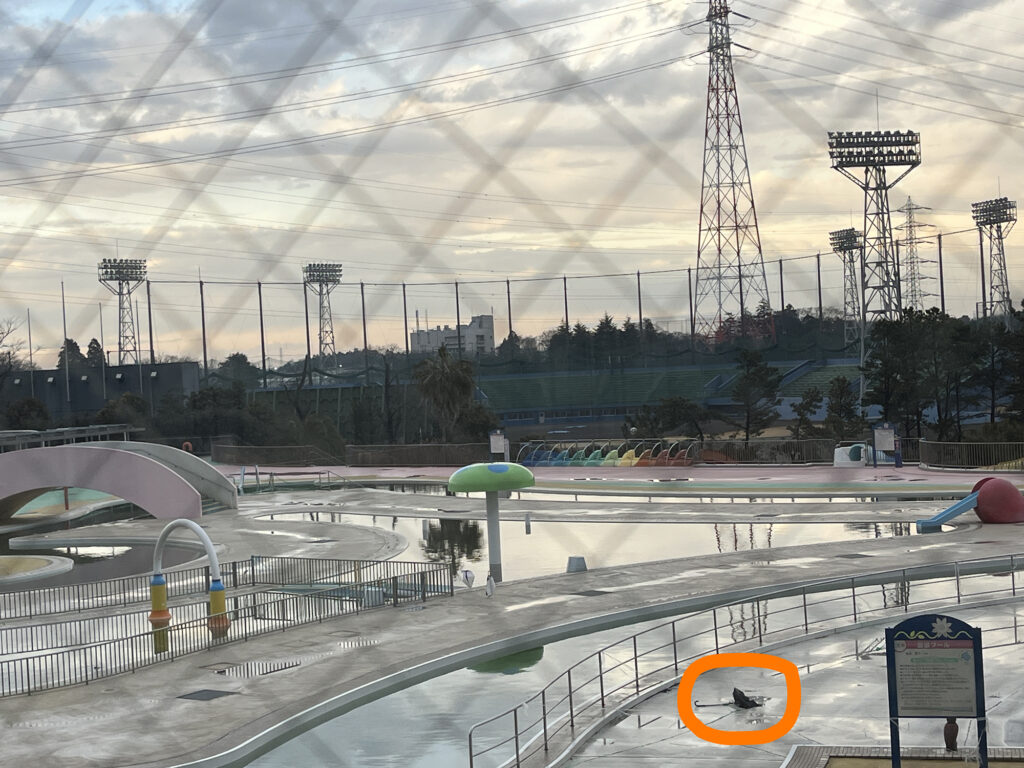 ここはプールがあるのか〜そして、「んっ?」何か落ちてる。