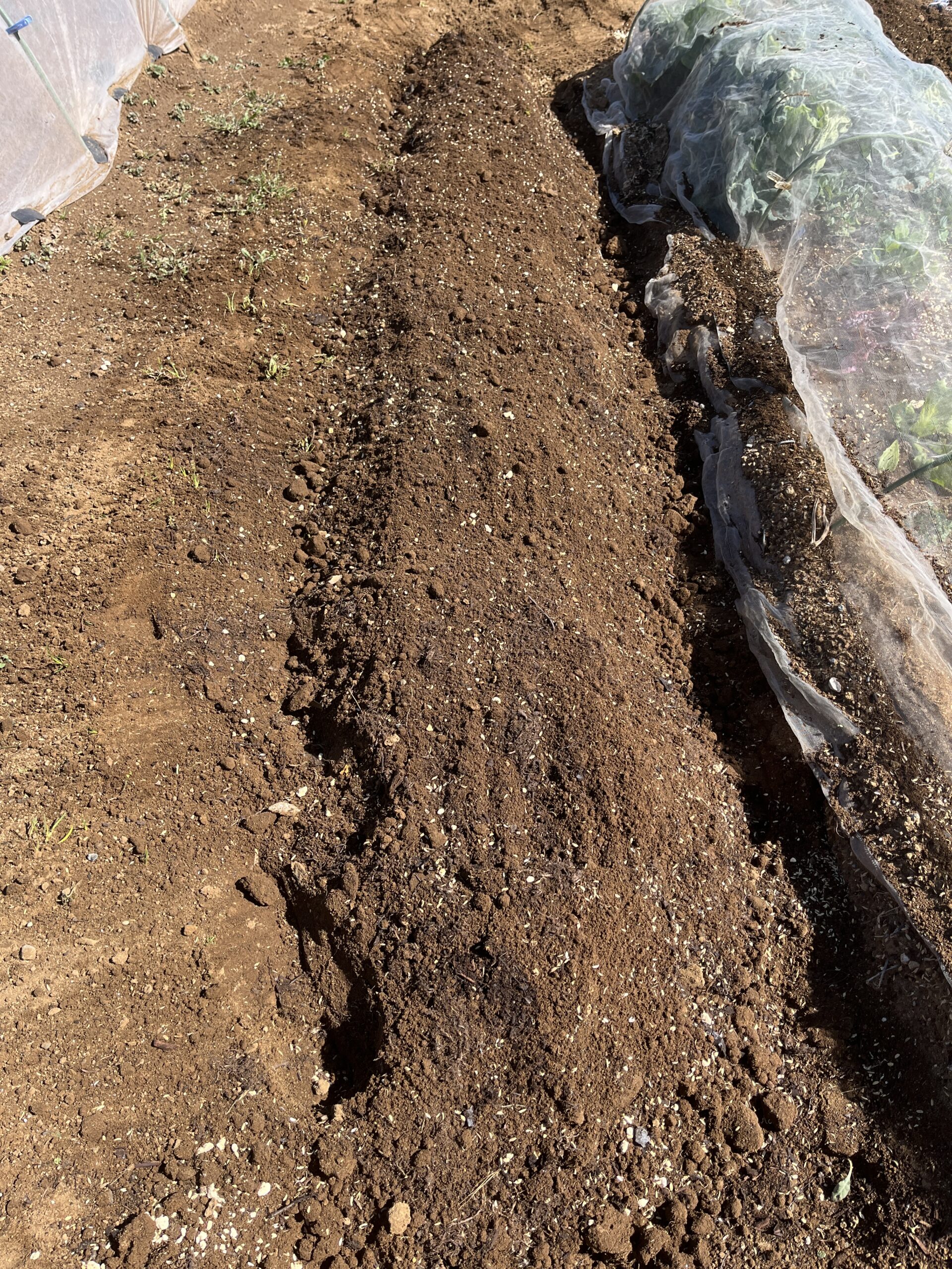 試しにビニールをかけた畝とかけてない畝の出来を比べてみようと思います。