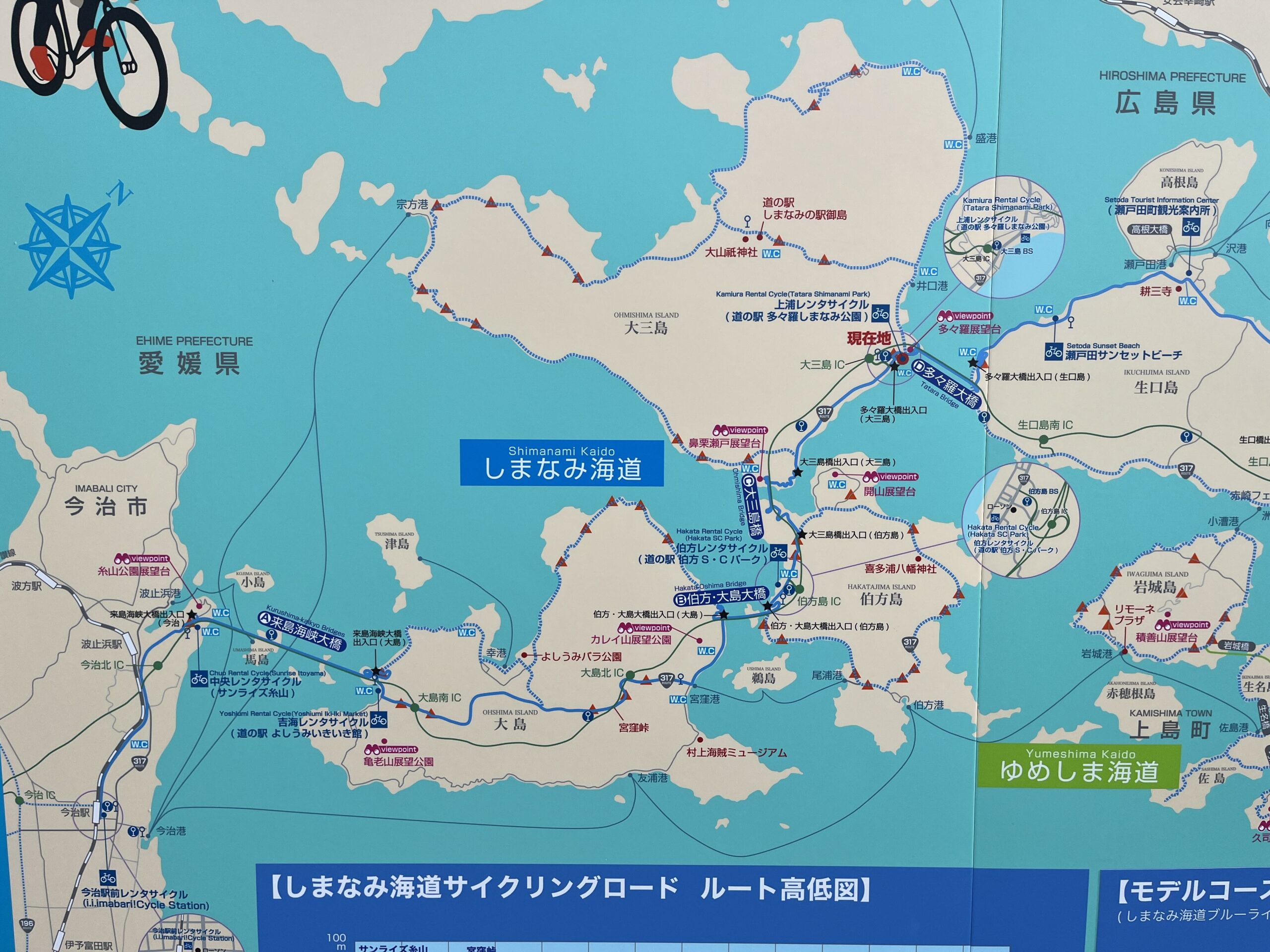 また、少し時間を作り、せっかく愛媛に来たので最近衰え気味の体力改善のため、しまなみ街道で約60kmぐらいでしたが、自転車で走破してきました。