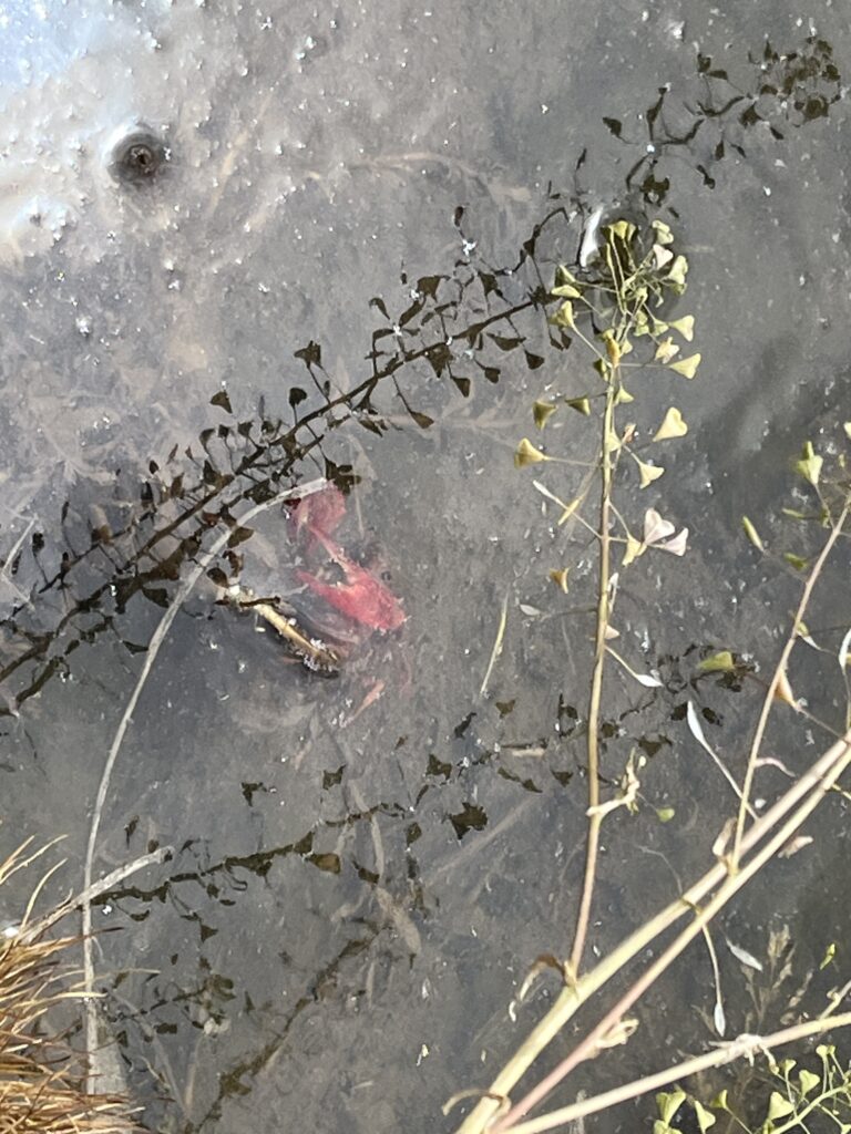畑も横の水路では、もうザリガニが動き初めてきました。