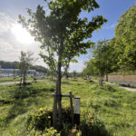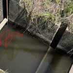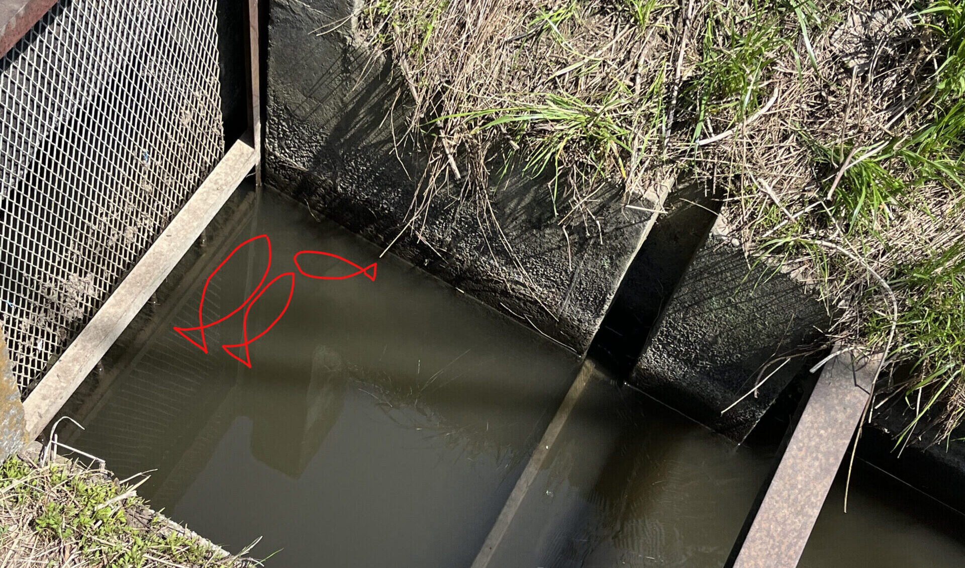 ちょっと水が汚くて見ずらいですが大きくなった鮒のまわりに小鮒がたくさん泳いでました。
